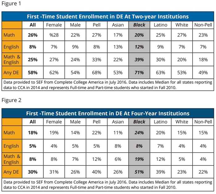 “Although DE is a higher education issue that affects students from all ethnic backgrounds, Black and Latino students are impacted the most…The path to DE does not begin in higher education, but is a byproduct of a number of factors students face before entering the higher education system.”